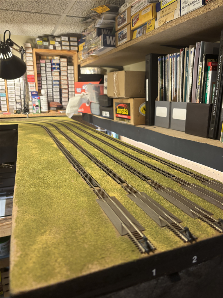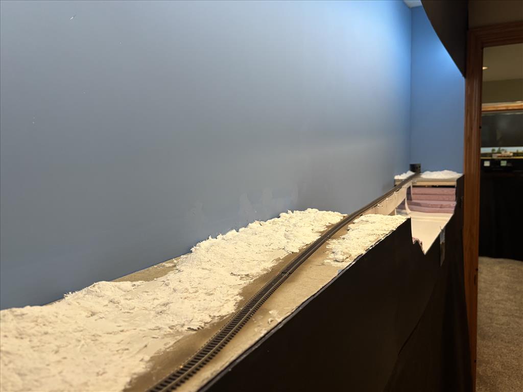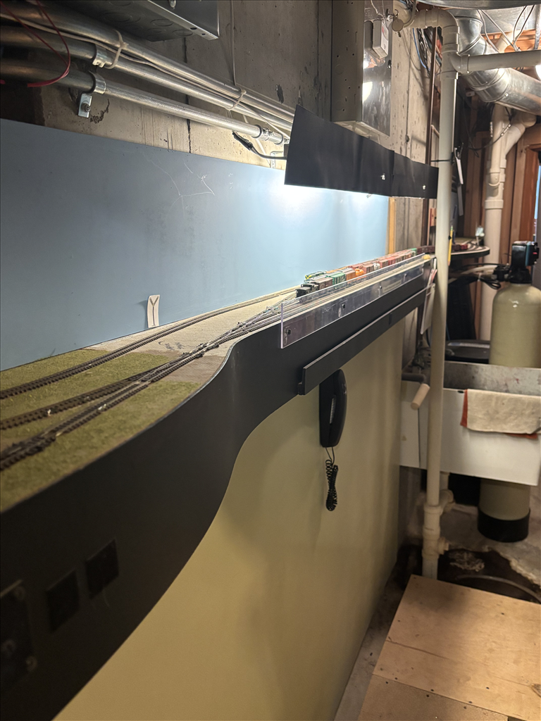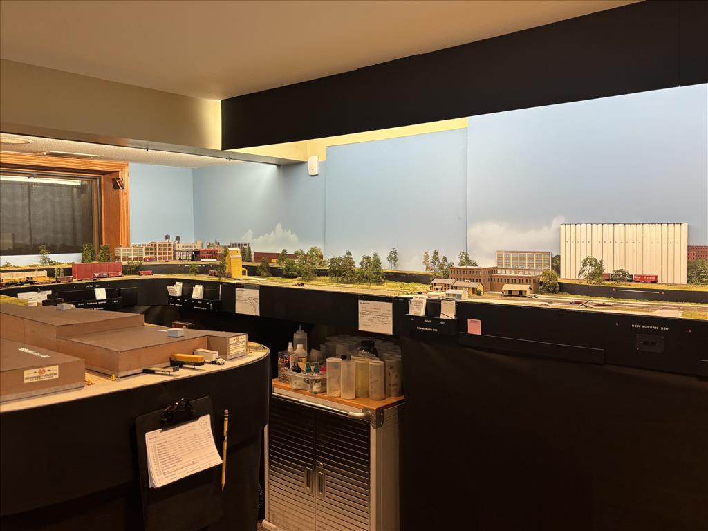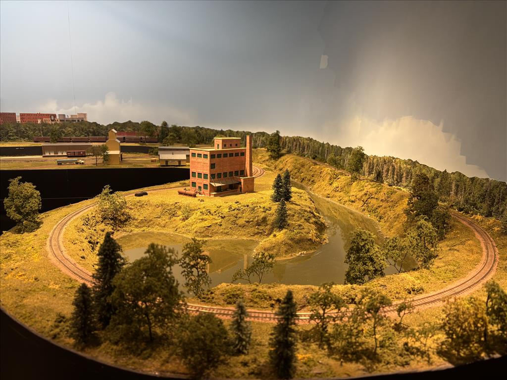 A combination of around the walls, peninsula and double deck bench work in 5 different rooms holds about 300' of main and branch line.