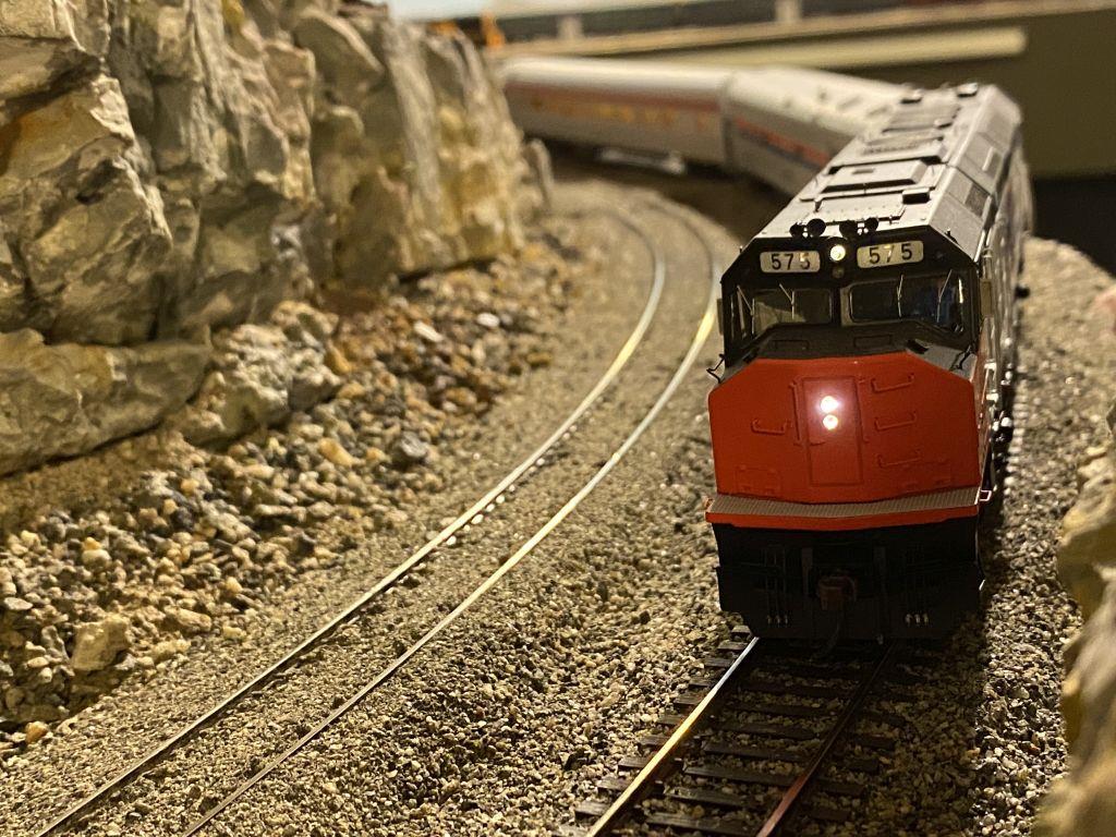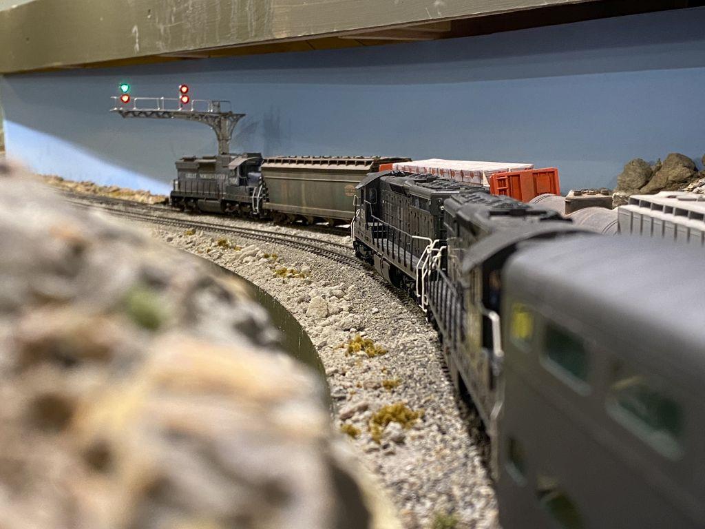 The GNW is a proto-freelanced layout with a strong focus on operations. As for the back story, the GNW was conceived shortly after the Union Pacific built and purchased lines connecting Oregon and the northwest sometime after the first transcontinental railroad was completed. The vision was to connect the ports and timber resources in the northwest with the growing state of Texas, including their ports, with a line connecting the SP in Tucumcari New Mexico with the UP, SP and Rio Grande near at Green River Utah. While this concept was valid, it did not result in the bridge line as intended – connecting traffic was sparse at best. However numerous mineral and oil reserves were discovered along the line, creating enough traffic to keep the line viable. Additionally, the GNW bought up the old narrow gauge right of way from the Colorado & Southern (itself later merged into the Burlington Route and the AT&SF), including the old R.O.W of the Denver, South Park and Pacific, with the connection into Denver as well. This added in a number of coal and mineral interests along the line. To effectively use this line, the GNW rebuilt the track to standard gauge. The railroad operates with bridge traffic, primarily from the SP, along with a considerable amount of local traffic. In the early 70’s, Amtrak found this line provides a useful connection between its operations in the northwest and south central US, and consequently added trains 31 and 42: the San Juan, borrowing the term from the D&RGW varnish that once ran along this part of the country.