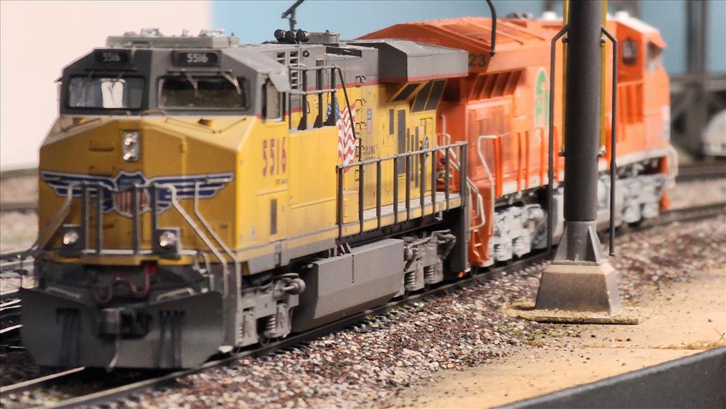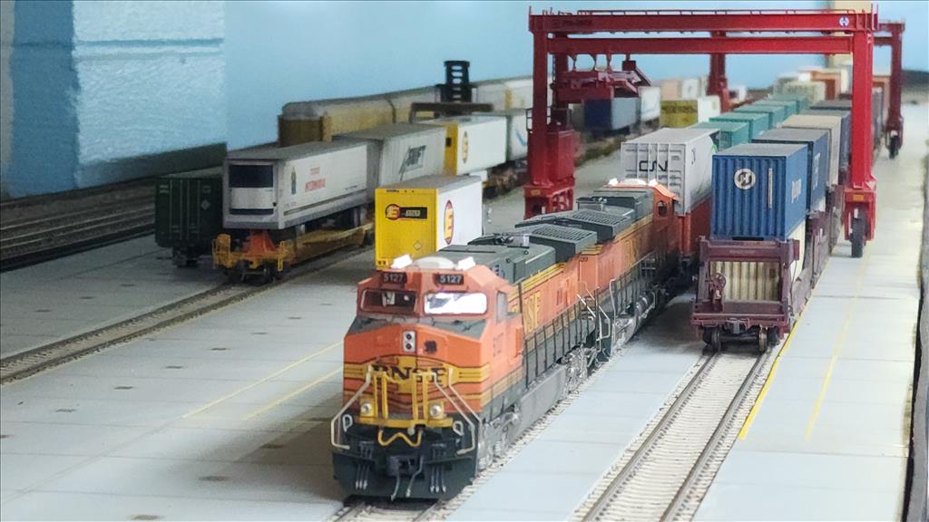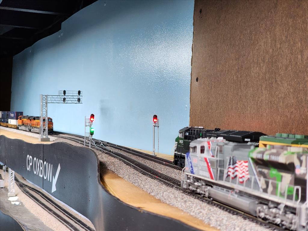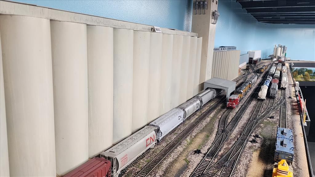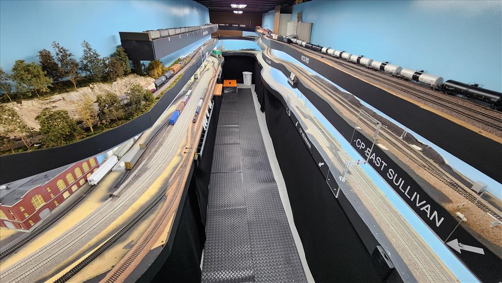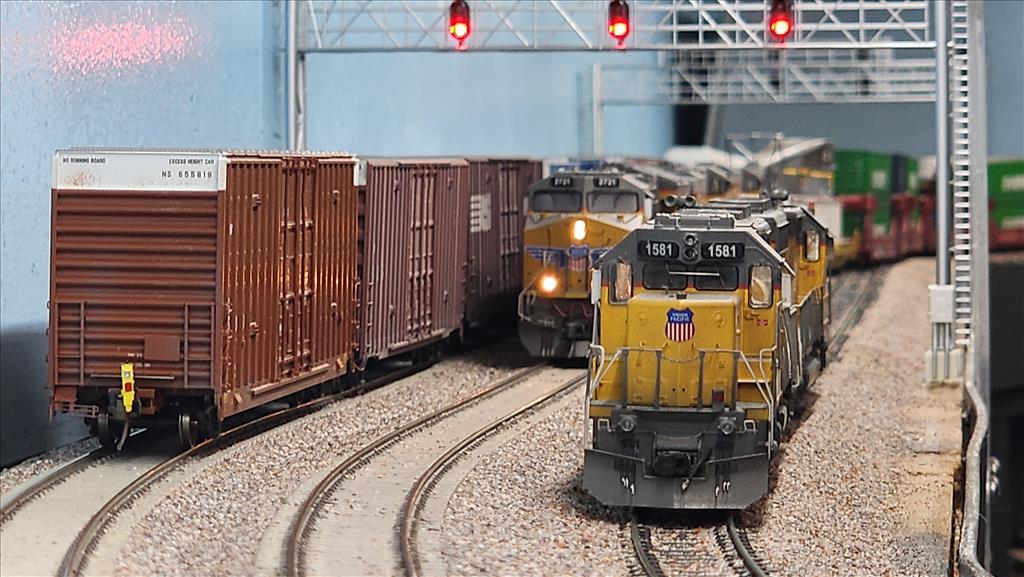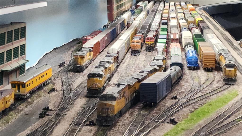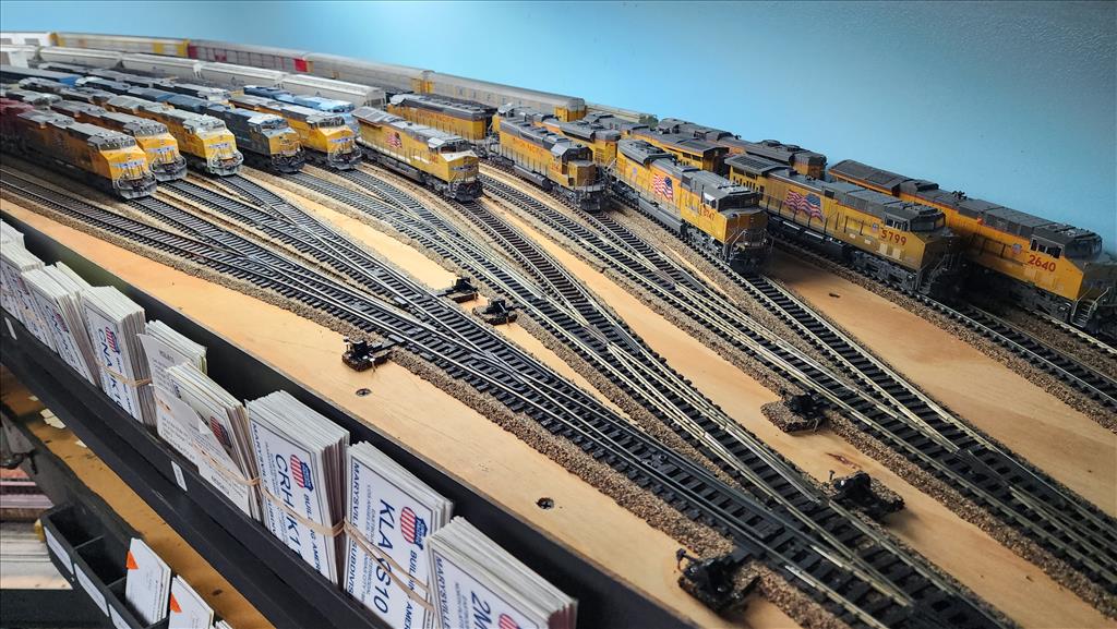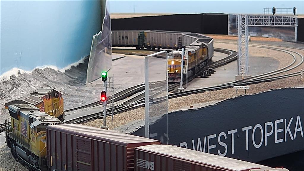 A modern day freelanced layout of the Union Pacific line between 18th St yard in Kansas City Kansas and Gibbon Jct Nebraska. This line is comprised of 2 subdivisions. There is also a Kansas City Terminal RR industrial switching area, a BNSF local area in Topeka KS, a small yard and large grain elevator at Marysville KS, a large intermodal terminal at Hastings NE with a BNSF staging connection, a power plant at West Topeka KS. This is a 3 level layout and unfortunately the isles are narrow. There are 3 locals and up to 34 through freights. Several of the trains have work en route so there is a lot of action. The jobs consist of 18th St yardmaster, dispatcher and up to 7 road operators. There is very little scenery at this time. Its all about operations!
